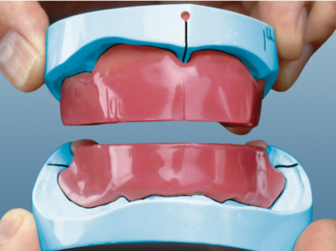 베이스플레이트 제작 중에 기술자는 파손을 방지하기 위해 마스터 모델의 언더컷을 차단해야 할 수도 있습니다. 이로 인해 시적하는 동안 베이스플레이트가 약간 헐거워질 수 있습니다. 이러한 경우에는 안정성을 향상시키기 위해 소량의 의치 접착제를 사용할 수 있습니다. 틀니가 가공되면 정확하게 맞물려질 것입니다.